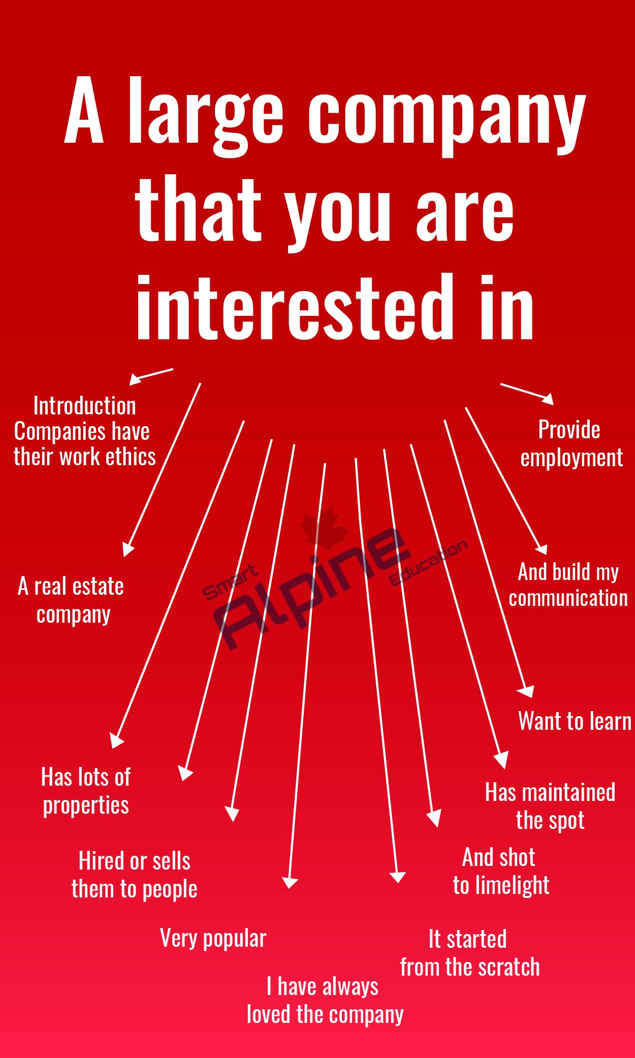 You should say -Which company is it -What it is like (what kind of business it does) -How you know about it -How you feel about it -Why you have interest in this company Model Answer Synonyms- Company- Industry,firm,enterprise ,corporation