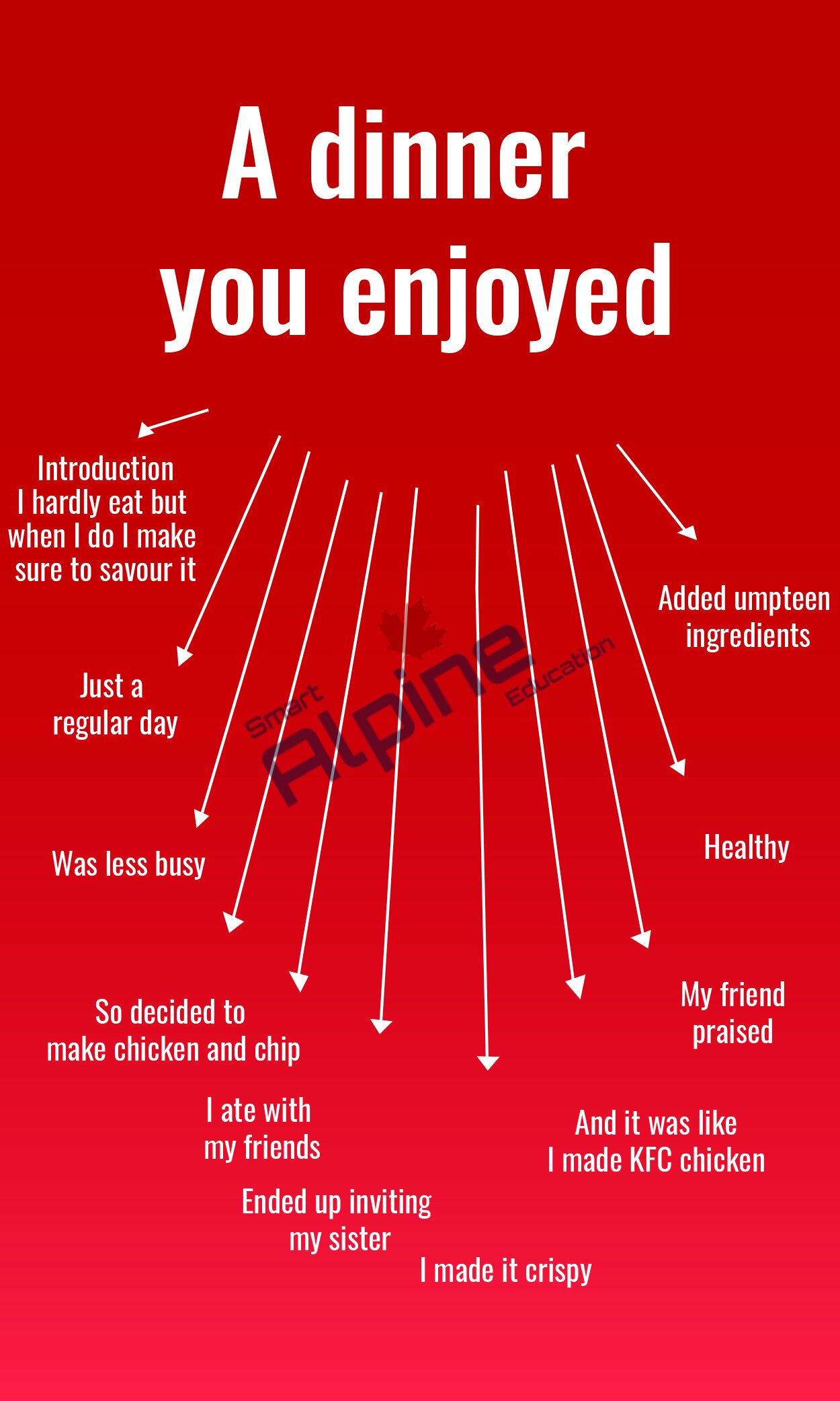 You should say -When it was -What you ate -Who you were with -Explain why you enjoyed it Model Answer