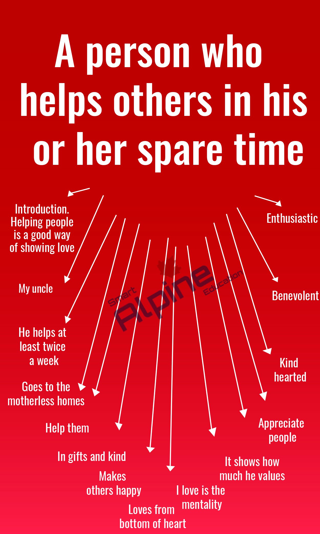 You should say -Who this person is? -How often does this person help others? -How does this person help others? -Why does this person help others? -How do you feel about this person? Model Answer