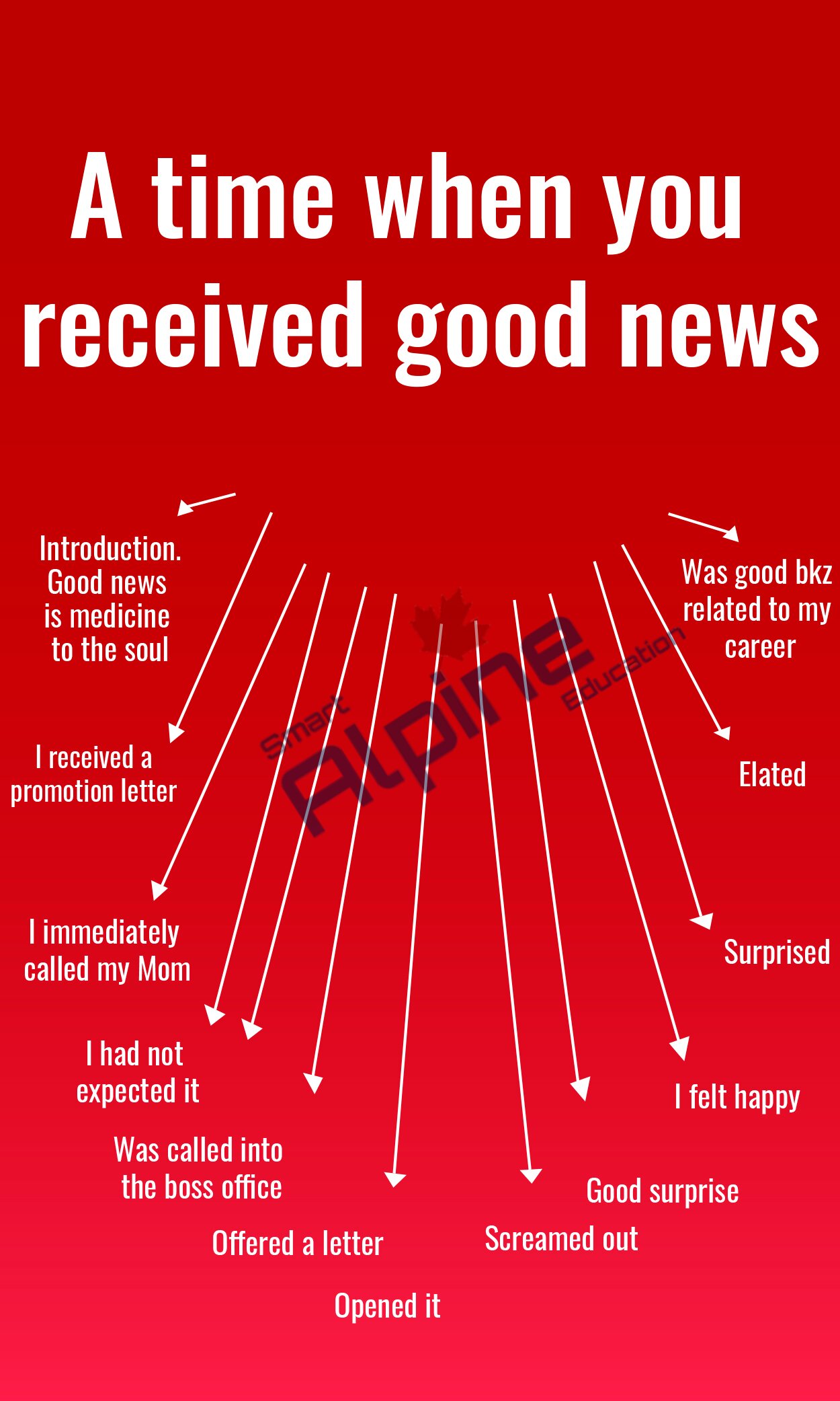 You should say -What was it about? -Who told you the news? -When did you know it? -How did you feel about it? -Why do you think it was good? Model Answer
