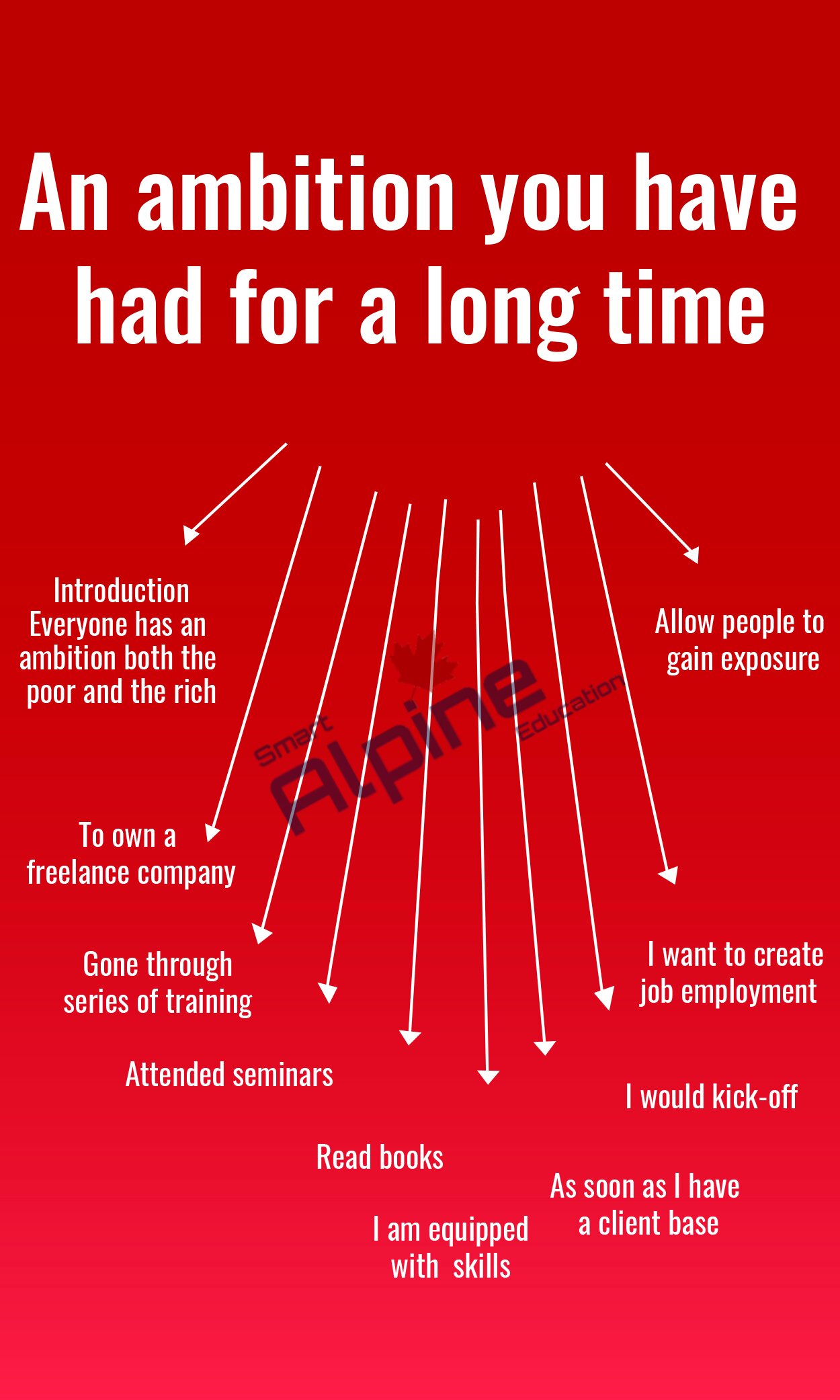 You should say -What is it ? -What did you do for it? -When can you achieve it? -And explain why you have this ambition? Model Answer