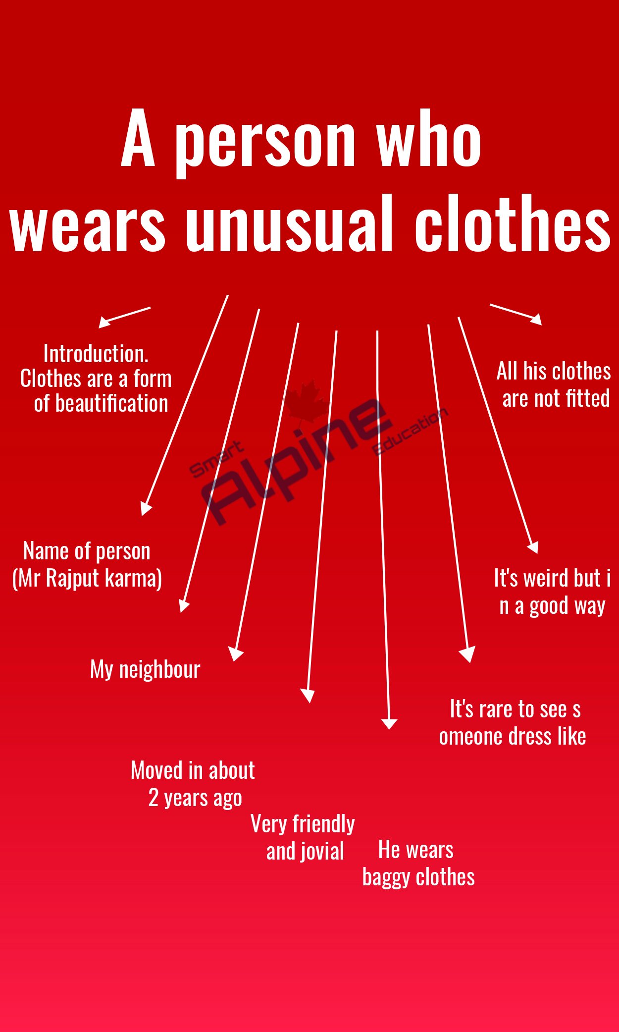 You should say -Who is he/she? -How do you know him/her? -What kind of clothes he/she wears? -Why do you consider that his/her clothing choices are weird? Model Answer