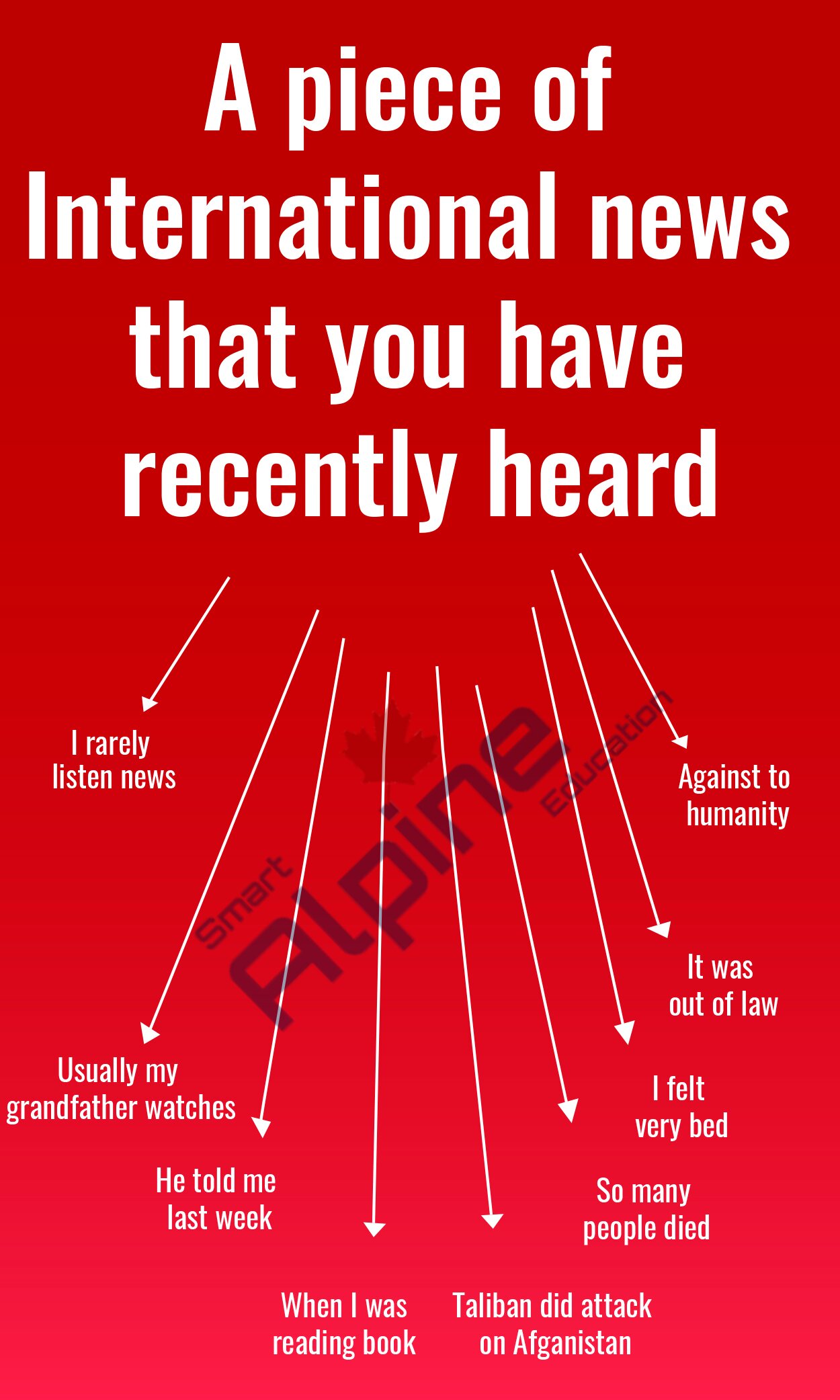 You should say -What the news is about? -Where and when you heard it? -What you were doing when you heard the news? -Explain how you felt about this piece of international news? Model Answer